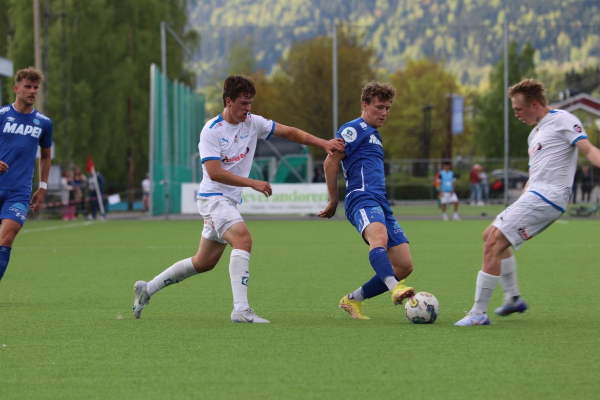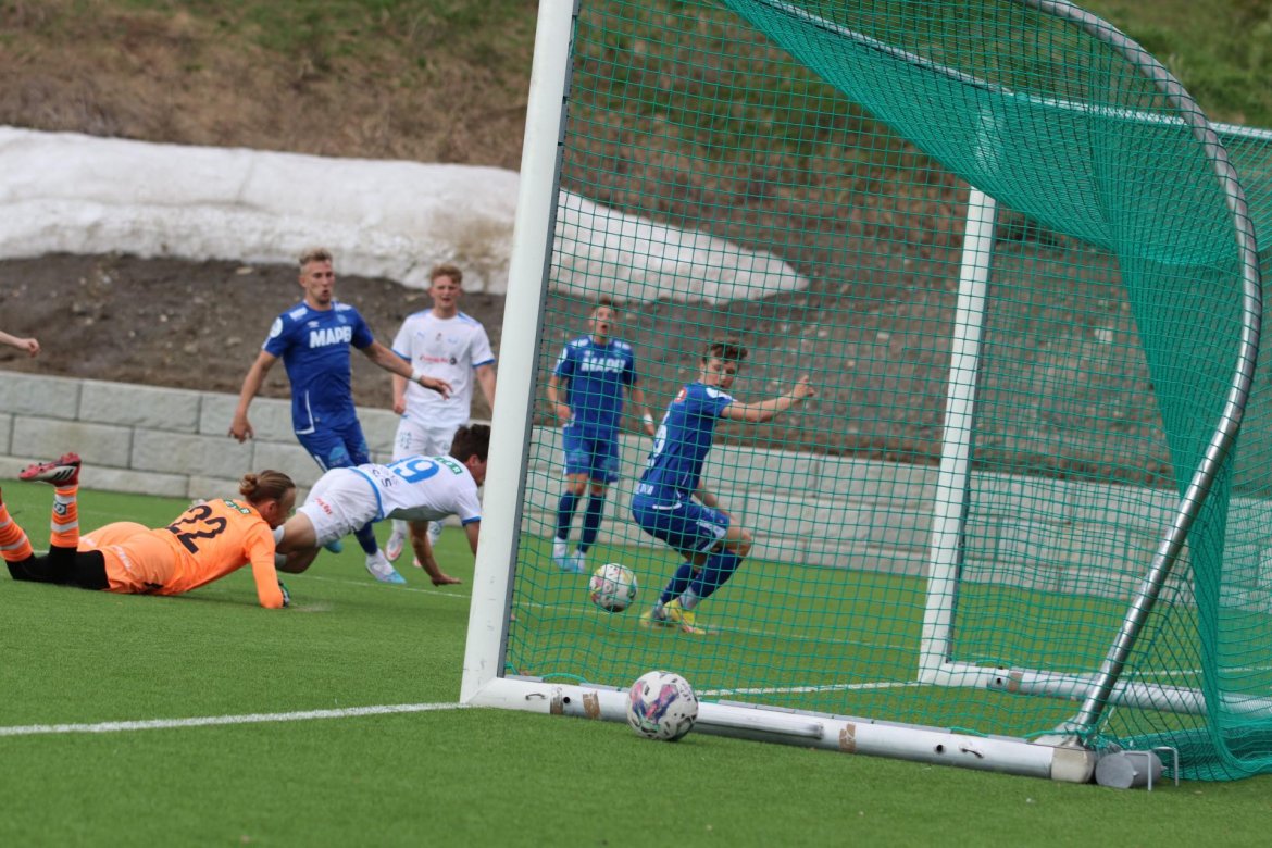 Mål: 0-1 Brage Berg Pedersen (5., str.), 1-1 (14.), 2-1 (26.), 3-1 (38.), 2-3 Berg Pedersen (49.), 3-3 Berg Pedersen (57.), 3-4 Joacim Holtan (64.), 3-5 Holtan (86.).