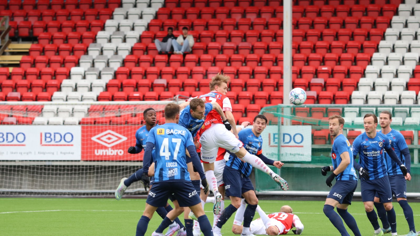 Med blodige bein og svette i håret sto Matias Aadnøy smilende igjen etter å ha spilt hele kampen mot Stabæk. Video