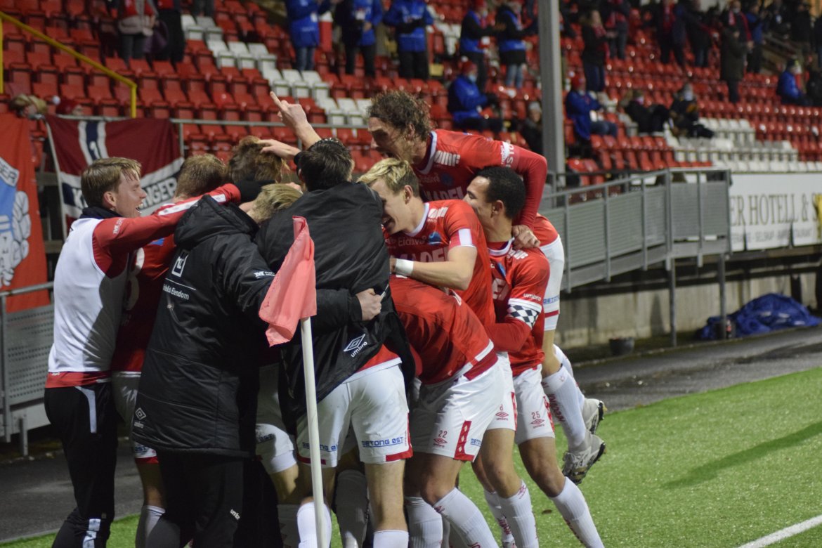 Se vår fotoserie og jubelscenene fra garderoben etter kampen mot Stjørdals-Blink.