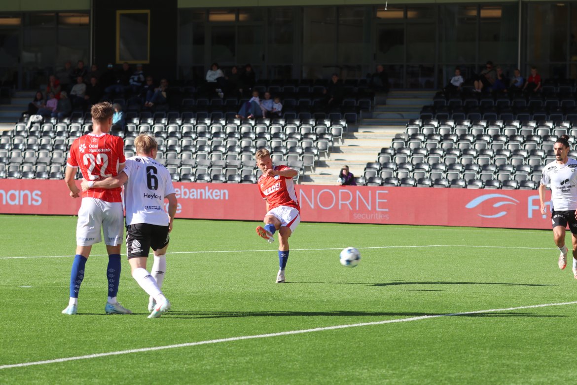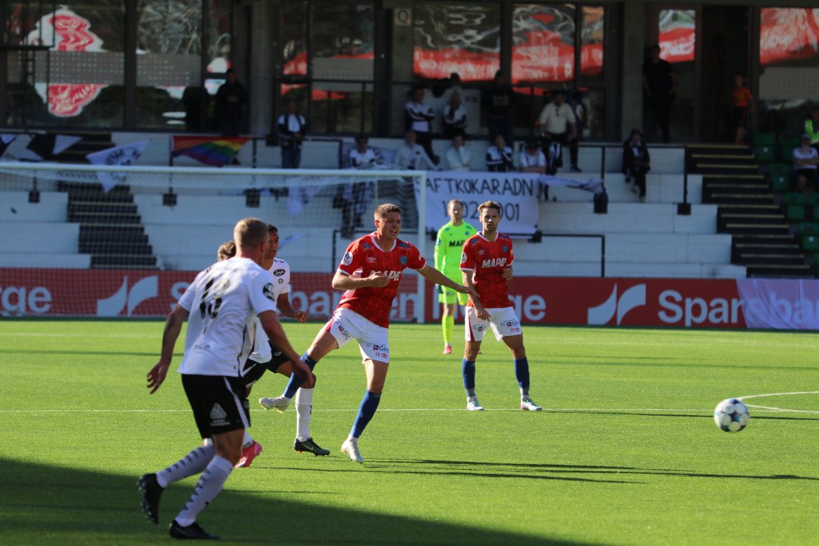 KIL tok ledelsen på overtid i den første omgangen, da Lucas Ravn-Haren tok oppstilling på et frispark fra distanse. Med sin dødelige høyrefot leverte han en skikkelig perle.