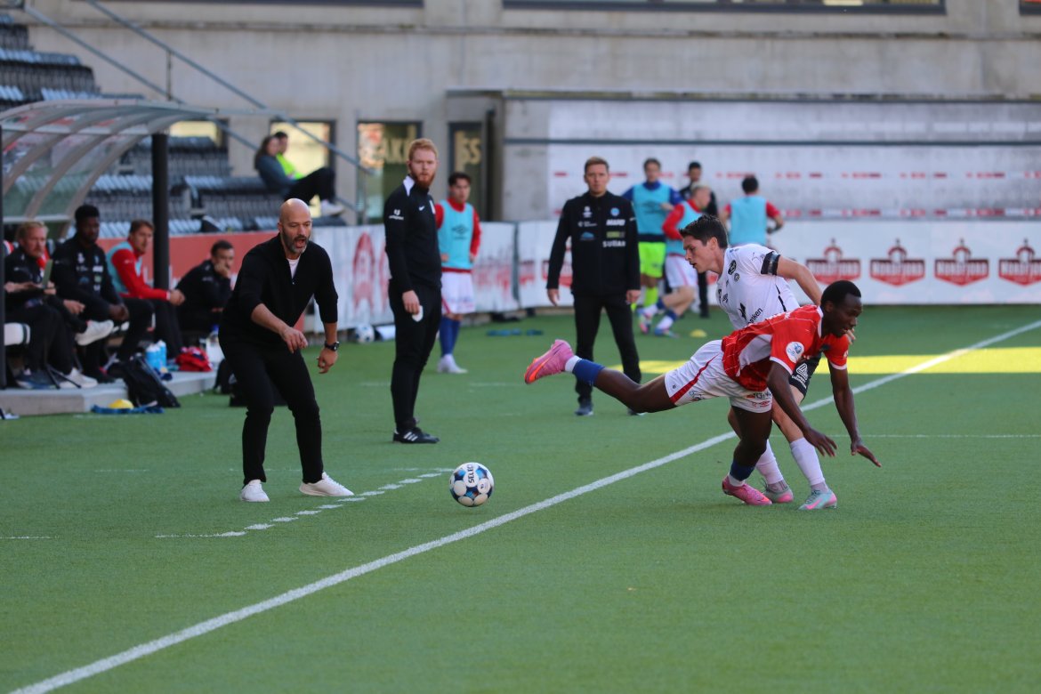 Med syv minutter igjen av ordinær tid pådro Emil Arendrup Nielsen seg dagens andre gule kort og fikk dermed marsjordre.