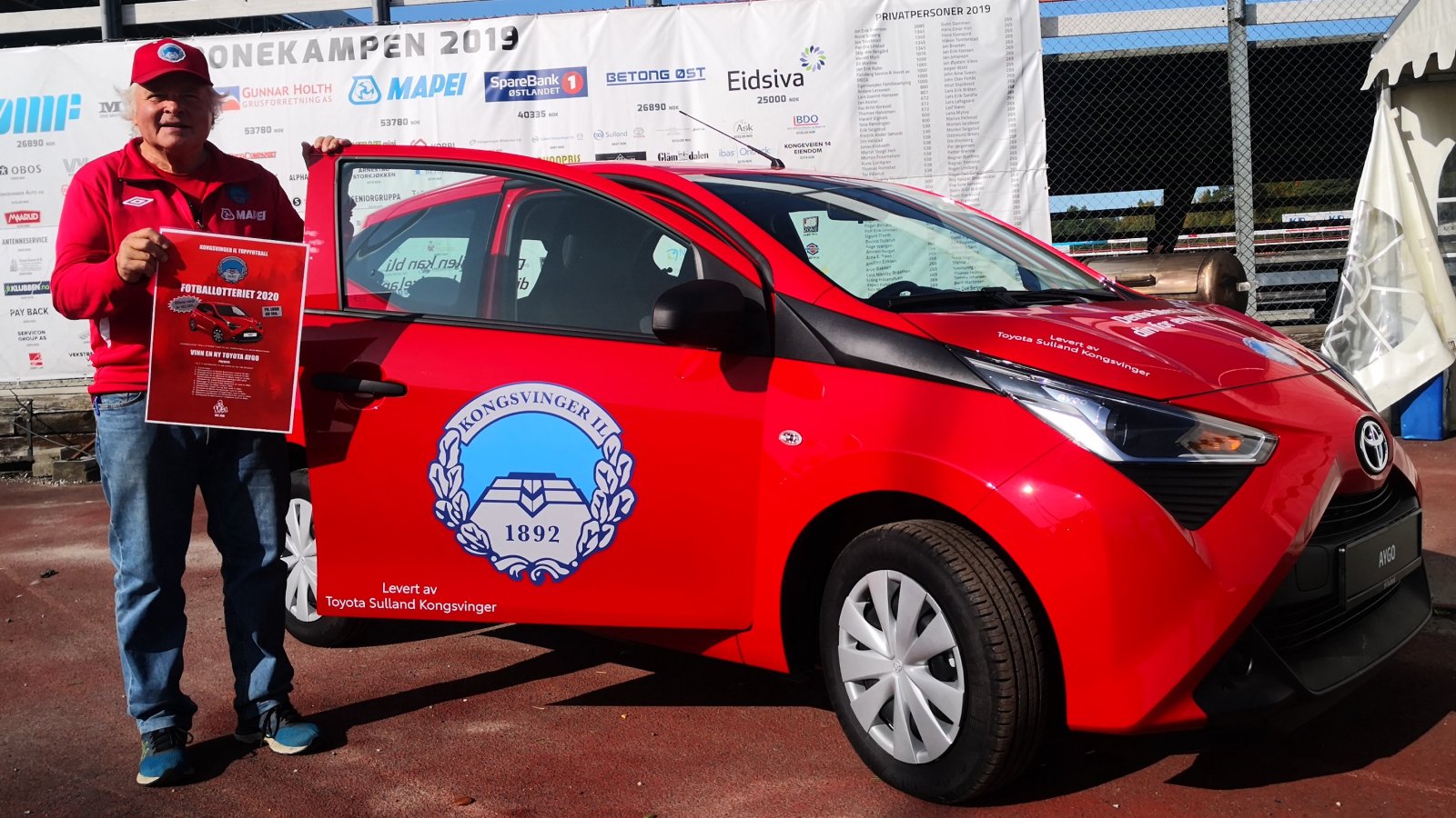 Foruten å friste med hovedgevinsten - en Toyota Aygo - så trekkes det også ut en heldig vinner som får ta med seg et familiemedlem og overvære Eidsivakampen mellom KIL og HamKam neste fredag. Hovedgevinsten trekkes i romjulen.