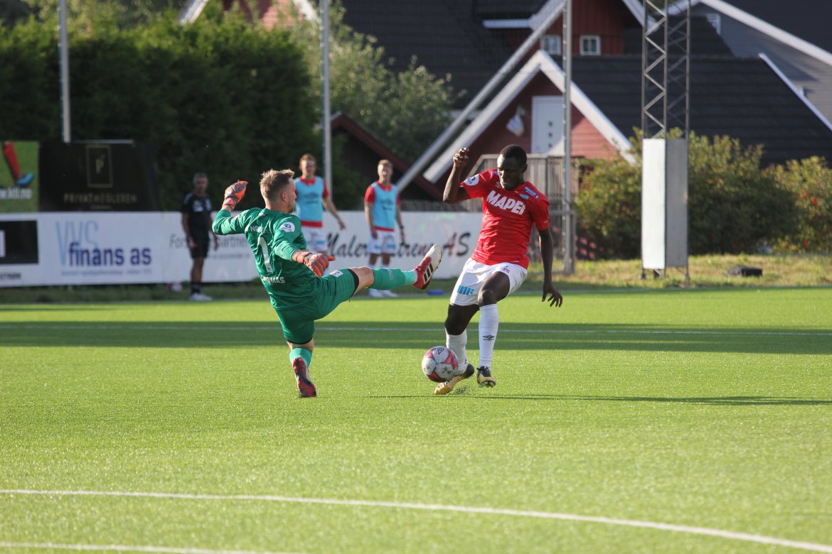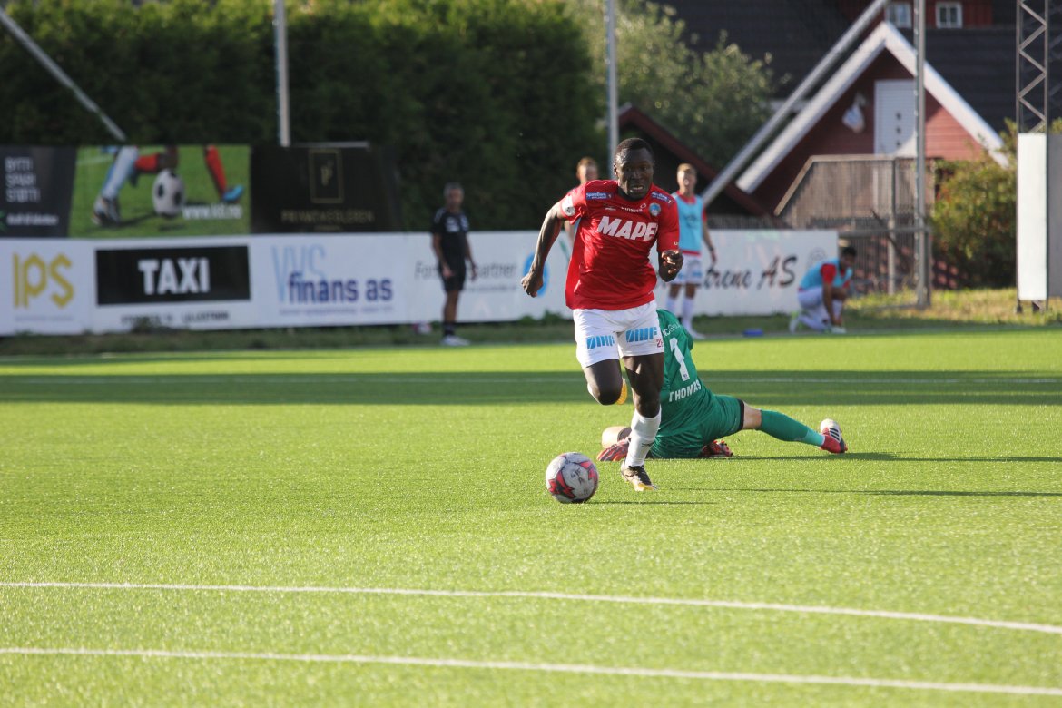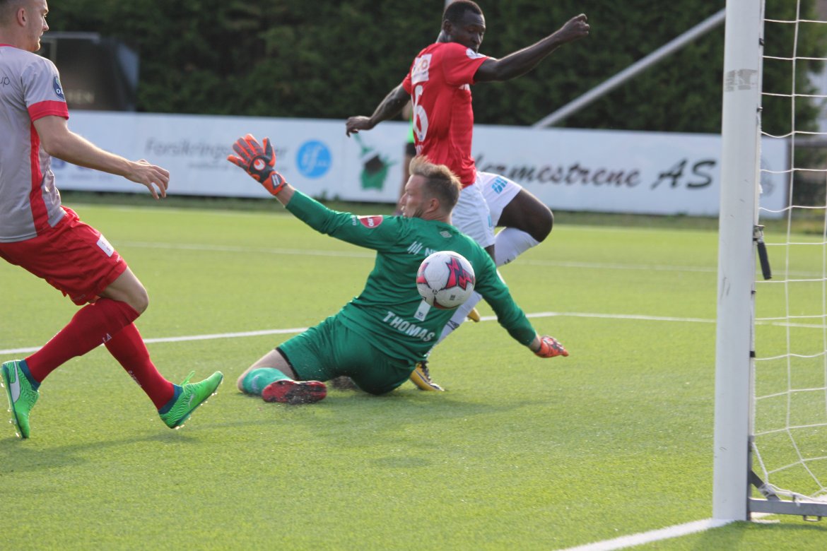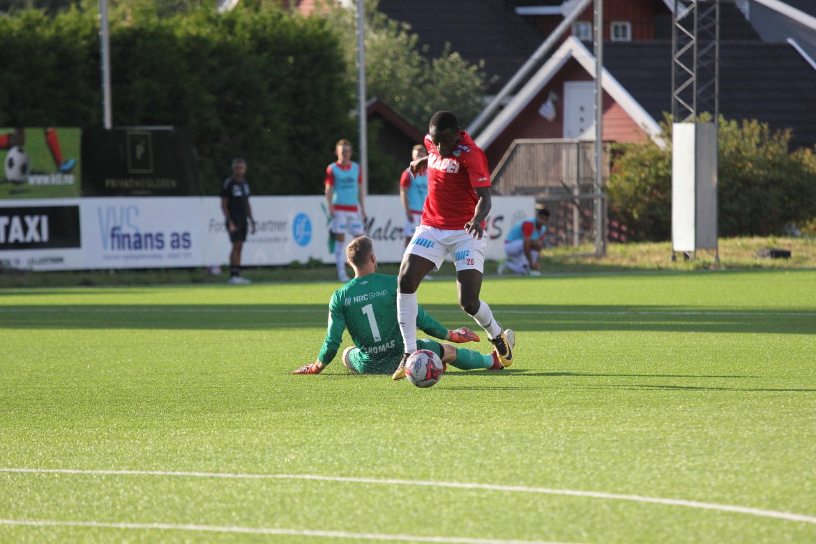 Mål: 0-1 Shuaibu Ibrahim (13), 1-1 Sindre Mauritz-Hansen (17), 1-2 Olav Øby (24), 1-3 Martin Lundal (43), 1-4 Ibrahim (52), 1-5 Ibrahim (64), 1-6 Marlinho (85), 2-6 Magnus Solum (90)