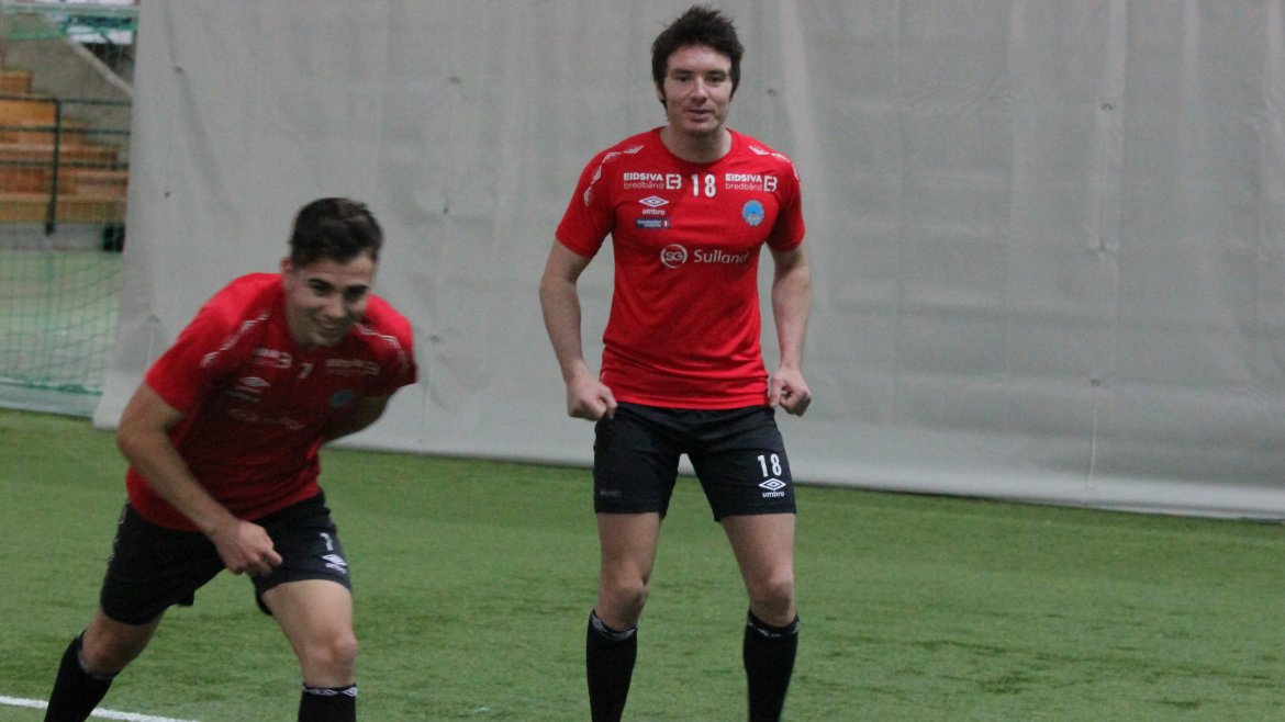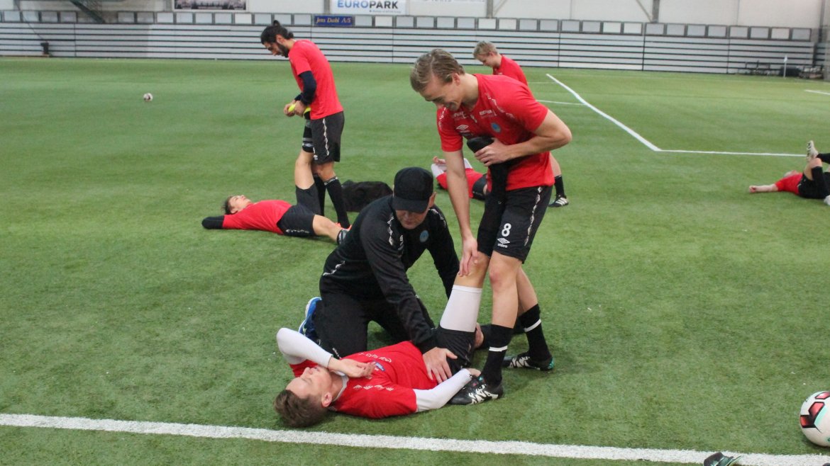 Under kan du imidlertid se en rekke bilder fra dagens fotballøkt ledet av Trond Amundsen. Det er en humørfylt og spent spillergruppe.