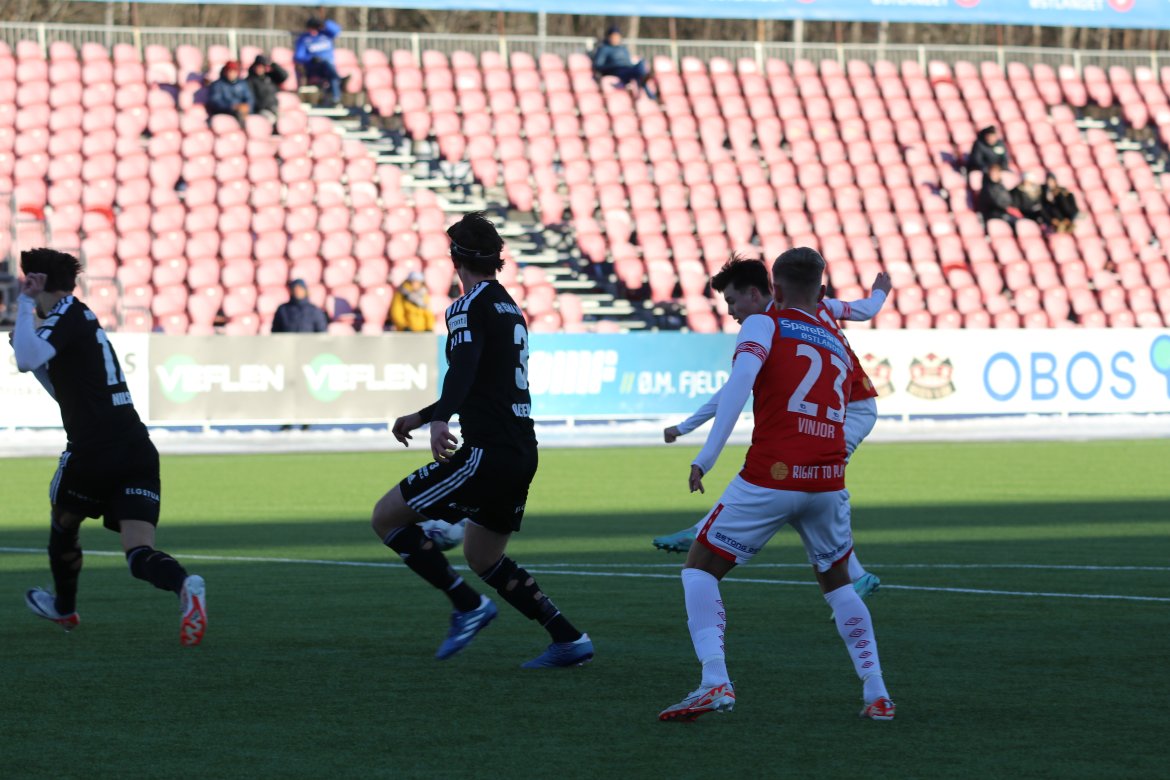 August Strömberg – Martin Hellan, Fredrik Holmé, Lars Christian Krogh Gerson, Daniel Lysgård, Marius Trengereid – Vegard Leikvoll Moberg, Eric Taylor – Martin Tangen Vinjor, Adem Güven (Peter Wilson fra 15.), Noa Williams.
