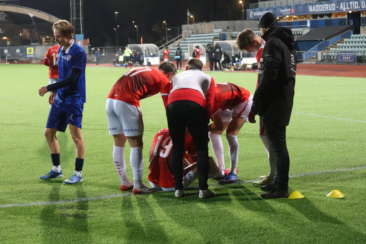 Sondre Norheim gikk av banen i pausen og fikk en ispose på kneet, men ifølge stopperkjempen dreier det seg neppe om noen alvorlig skade.