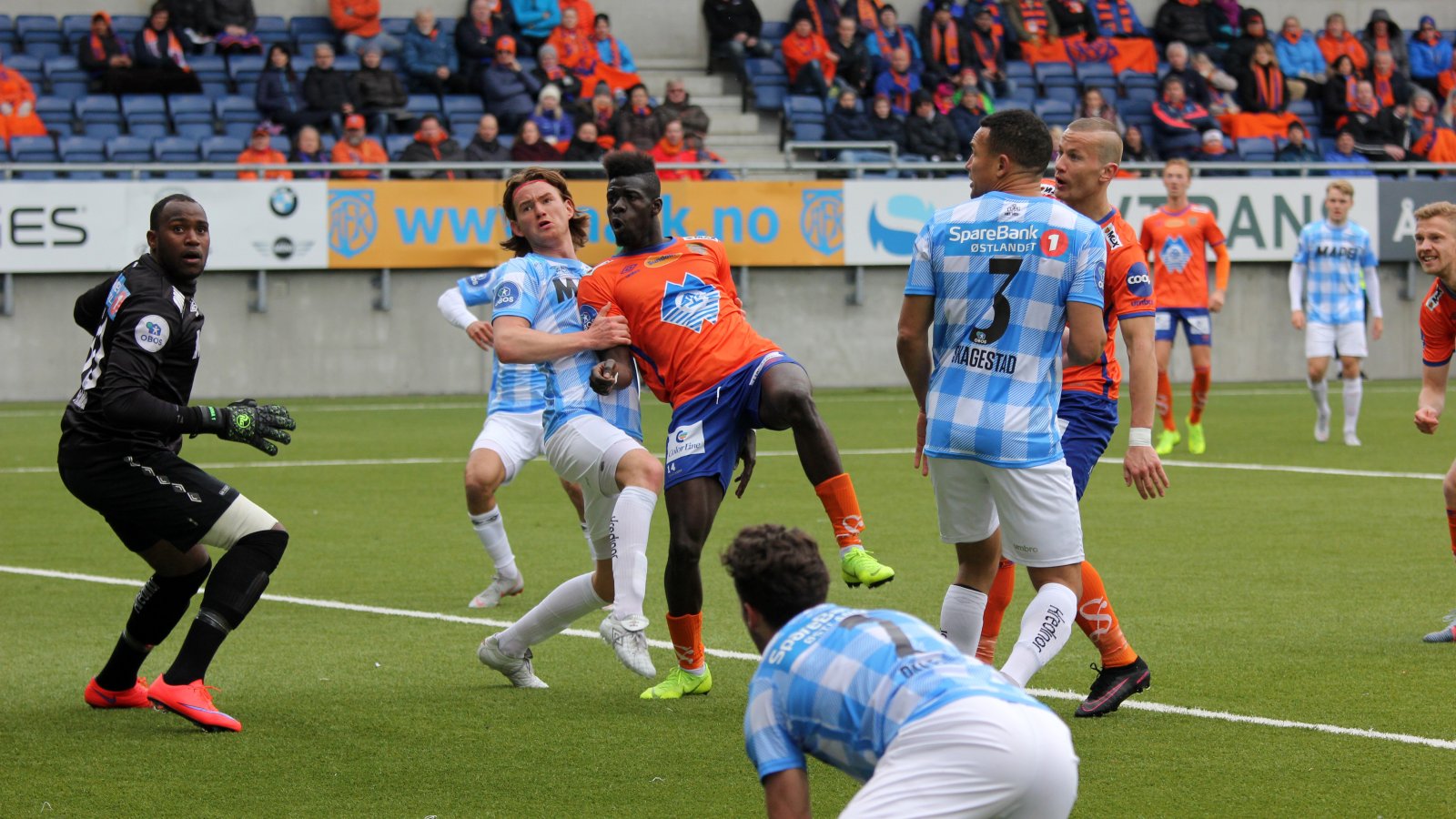 5. min.: Aalesund kommer til kampens første sjanse. Hjemmelaget biter seg fast etter en corner og kommer til avslutning ved hjørnet av sekstenmeteren. En god Ali Ahamada er kjapt nede og holder ballen i fast grep.
