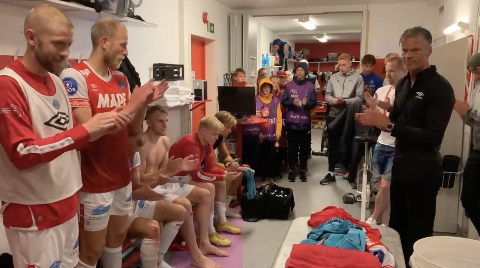 Etter seieren over Start samlet han laget i garderoben.