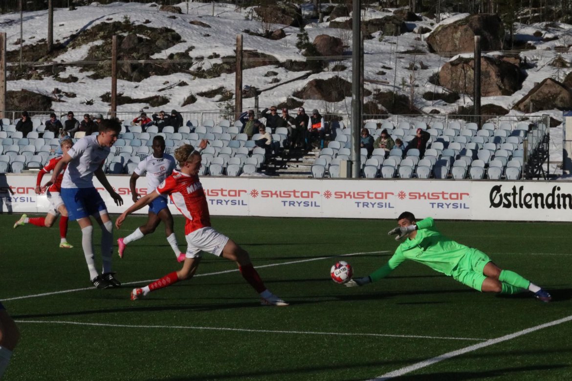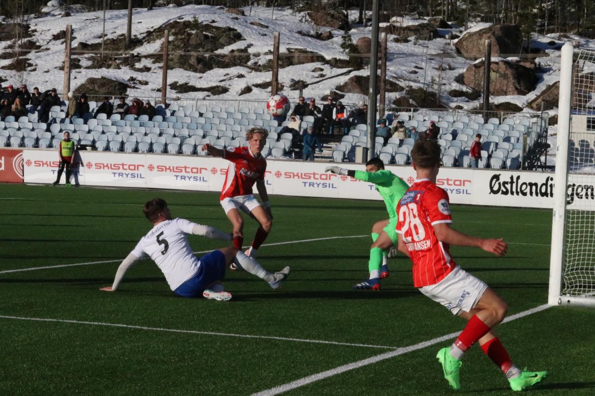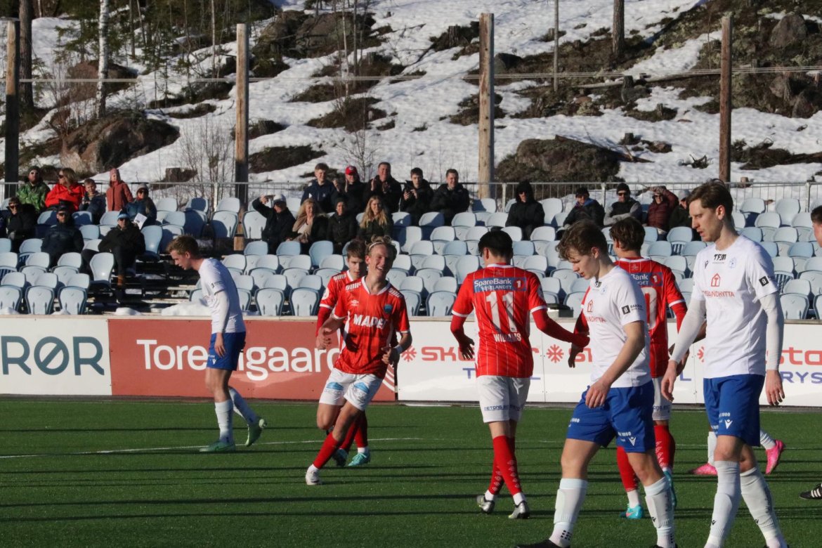Marius Aamodt Eriksen satte kontant inn 6-0 på et av flere gode, offensive løp, før Marius Damhaug (16) fikset syv med en frisparkperle.