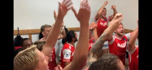 Det var rimelig god stemning i garderoben etter tre poeng på Raufoss.