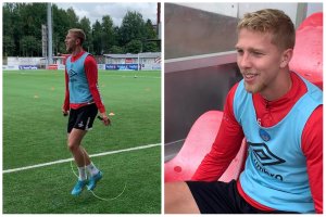 En syk Fredrik Holmé (21) måtte melde pass og stå over mot Mjøndalen. Nå er han tilbake på trening.